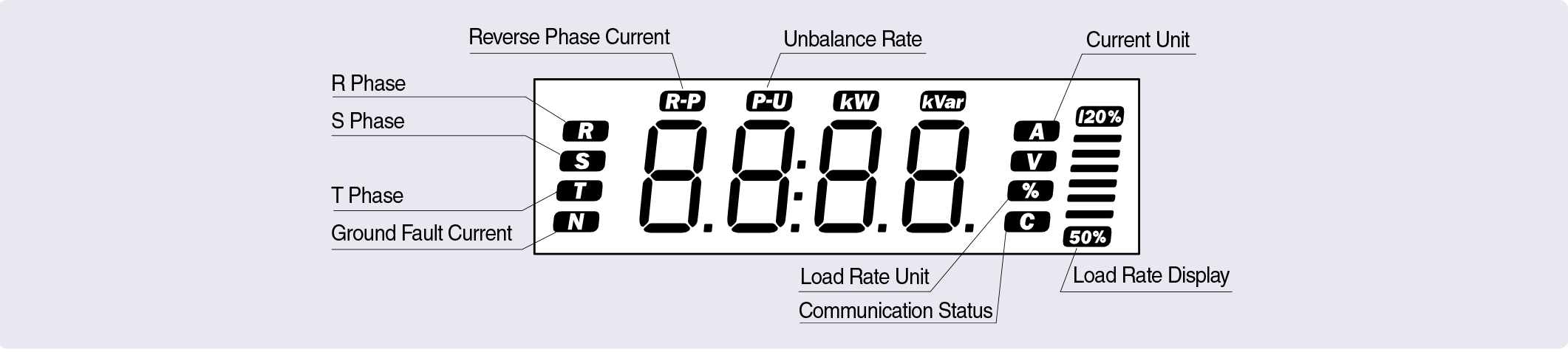 Analog (DC 4~20mA) Output / Communication 1) The biggest current out of measured 3-phase currents is converted into DC 4mA~20mA and the current measured remotely by digital meter can be displayed. 2) When there is no current, 4mA is sent. If the current goes beyond the predefined value,20mA is sent.